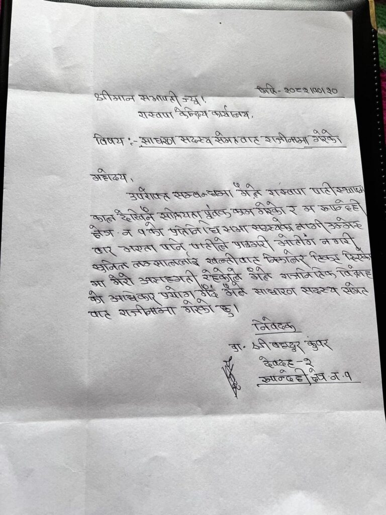 रास्वपाबाट उम्मेदवार सिफारिस भएका डा. कुँवरले पार्टी छाडे